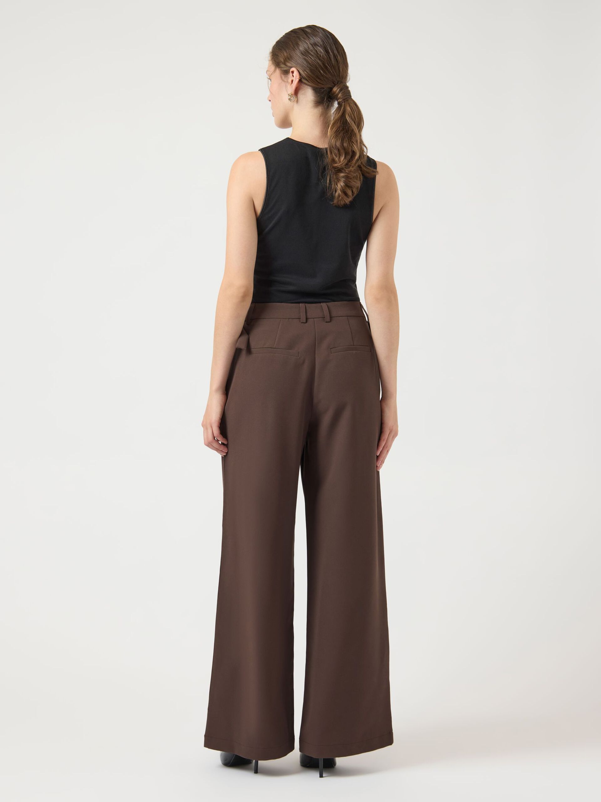 YASLURI HW‑byxor i en perfekt brun färg – perfekta byxor för både kontoret och vardagsgarderoben. Med hög midja och ett skräddat uttryck kombinerar de klassisk elegans med modern komfort.