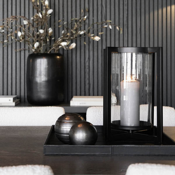 Lykta i svart metall med handblåst glas som ger ett stämningsfullt sken. En lykta som är en snygg detalj året om. Även en uppskattad present i kombination men blockljus.