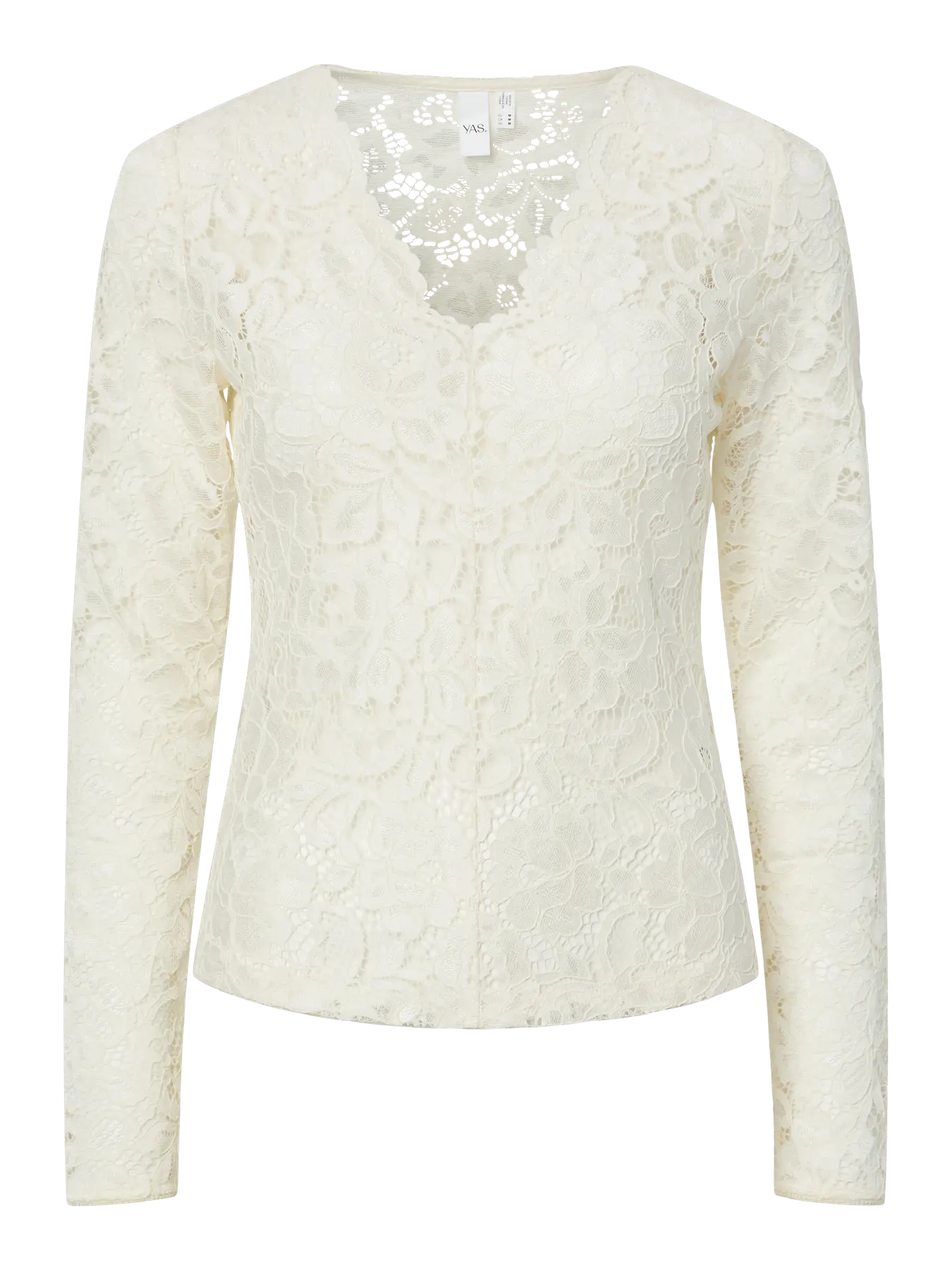 YASLACEY SPETS LÅNGÄRMAD V-TOPP PRISTINE