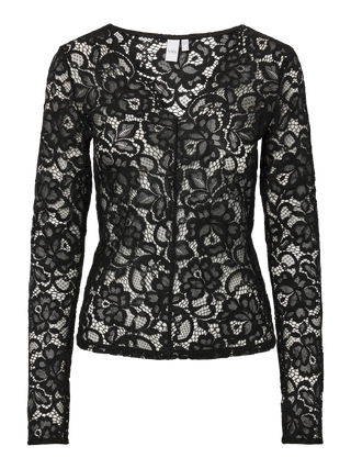 YASLACEY SPETS LÅNGÄRMAD V-TOPP BLACK