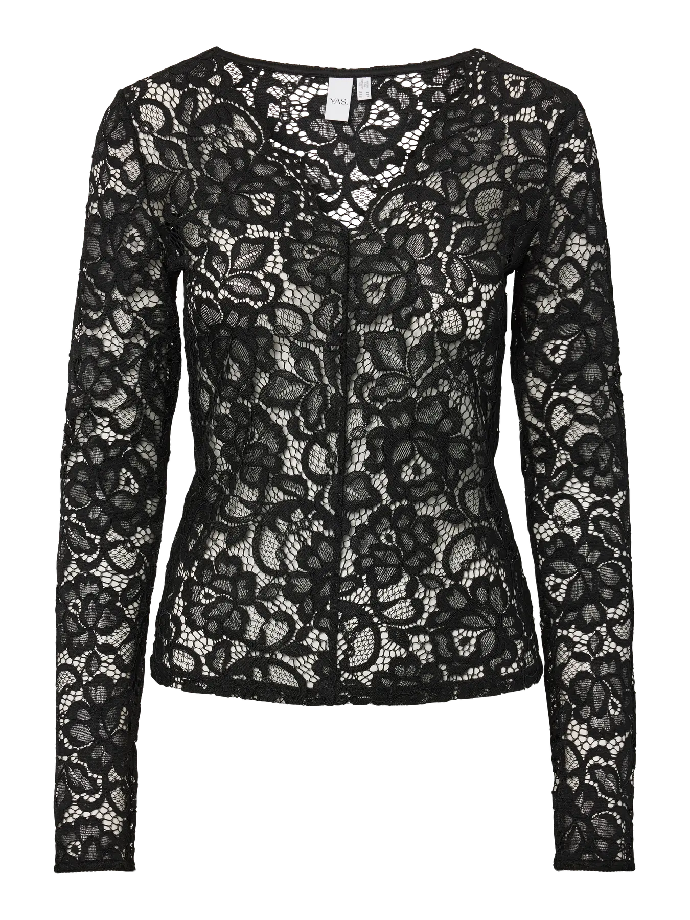 YASLACEY SPETS LÅNGÄRMAD V-TOPP BLACK