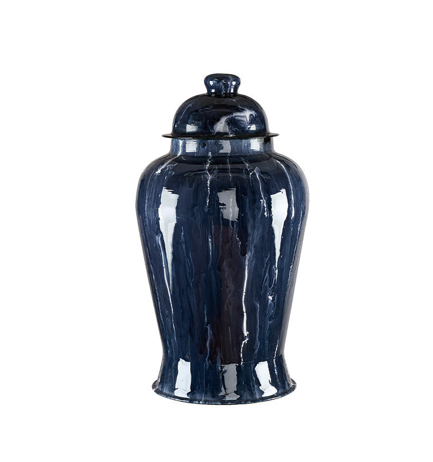 Denna eleganta metallurna med lock har en vackert handemaljerad, glansig yta och en sofistikerad form som gör den till ett unikt och exklusivt inslag i ditt hem. Den är perfekt som en dekorativ detalj, vare sig du placerar den i vardagsrummet, hallen eller på en skänk. Urnans stilrena design och blankpolerade finish skapar ett tidlöst uttryck som harmoniserar med både moderna och klassiska inredningsstilar. Dess högkvalitativa material och skickliga hantverk ger den en känsla av karaktär och elegans som höjer hela rummets atmosfär.
