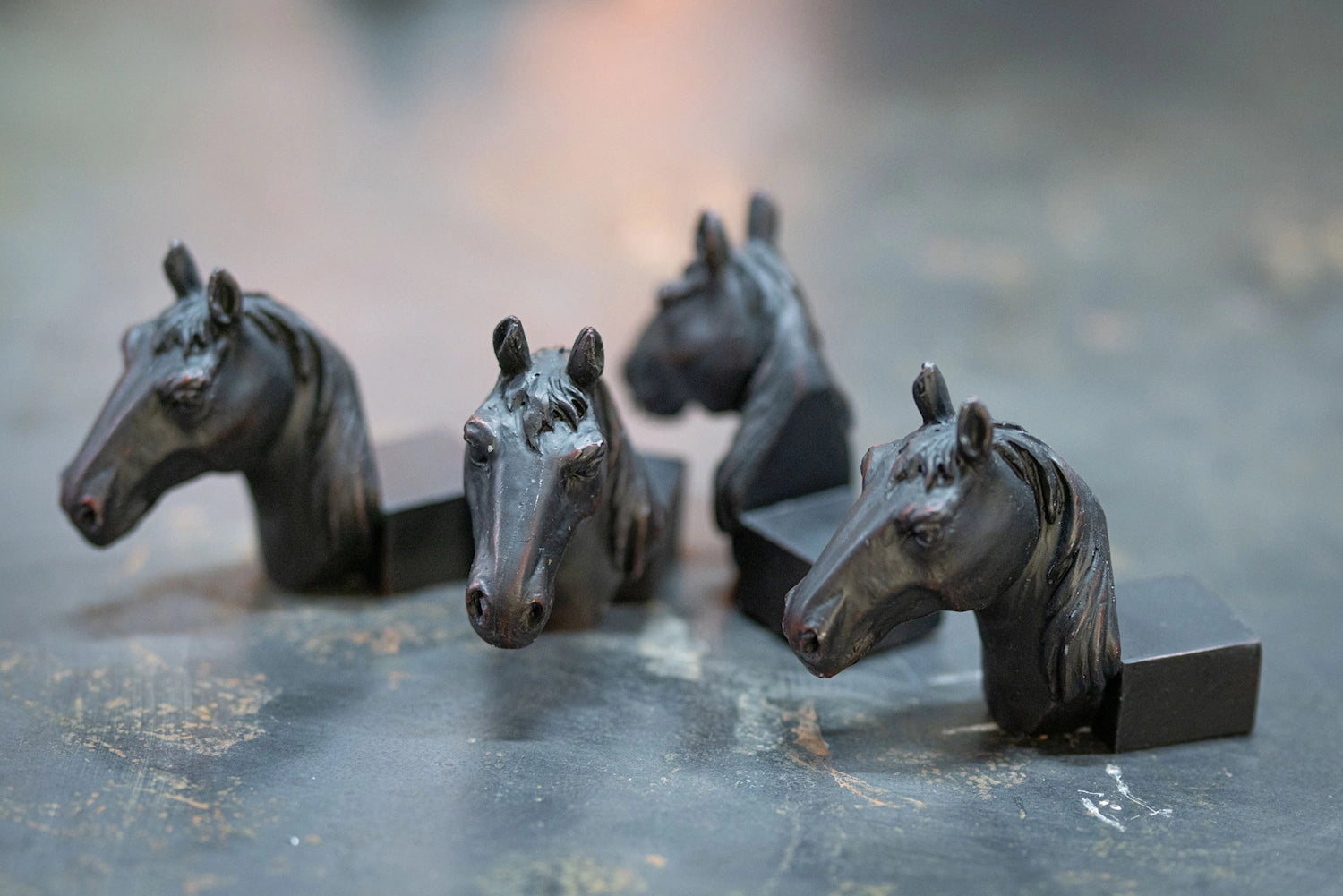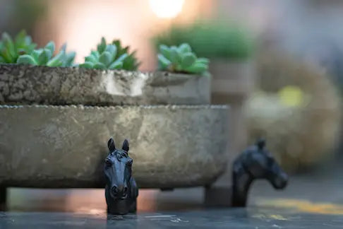 Se till att din kruka kommer upp en bit från golvet för att ge golvet extra skydd med dessa krukfötter, designade som hästhuvuden. Tillverkade i poly.